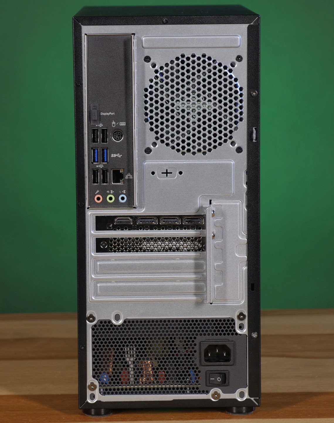 Сборка тестируемого ПК в корпуса формата Mini Tower стала возможной благодаря использованию соответствующей материнской платы, которая, в силу размеров, обладала всего одним PCI-E cлотом. Использовался он, очевидно, под видеокарту. При этом была предусмотрена вертикальная планка для ее дополнительного крепления видеокарты, что снижает нагрузку на сам слот. Опция крайне полезная, но по какой-то причине отсутствующая в большинстве современных корпусов. Из прочих особенностей компоновки стоит отметить отказ от узла установки фронтальных вентиляторов и потенциального размещения СЖО, а также уменьшение корзины для HDD до размера 1*3.5 + 1*2,5.
