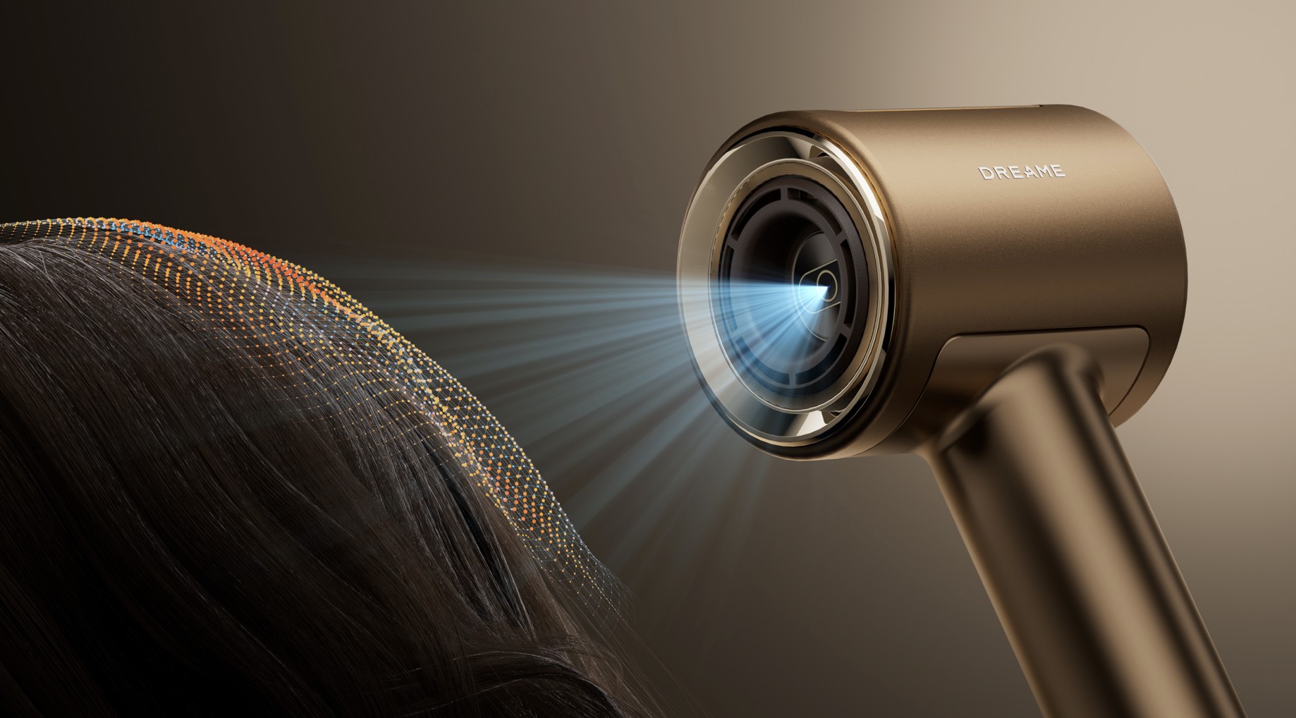 Фен Dreame Pilot стал одной из самых инновационных новинок презентации. Устройство оснащено мощным мотором на 150 000 об/мин, который обеспечивает скорость воздушного потока до 70 м/с и объём воздуха до 55 м³/ч.