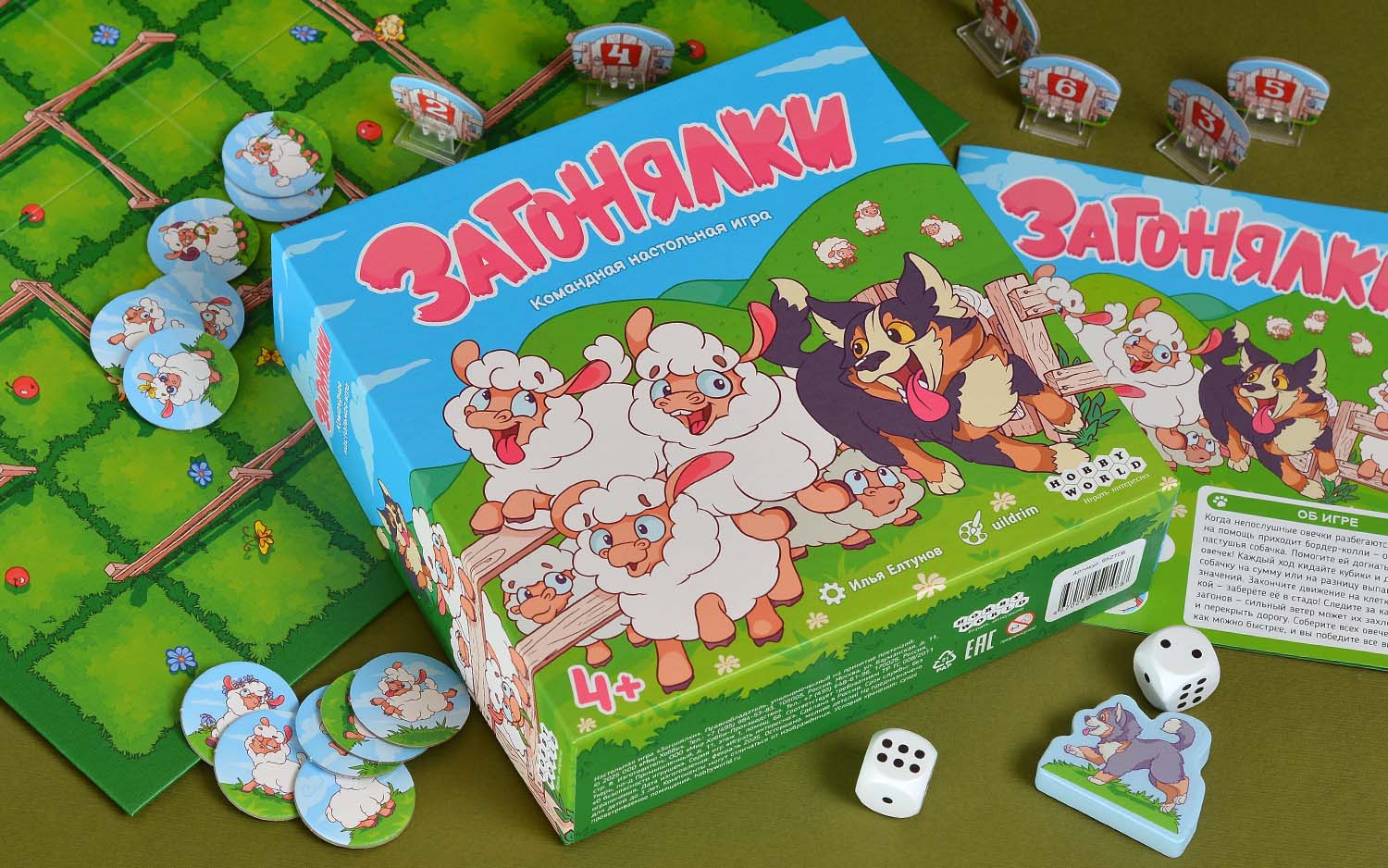 «Загонялки» – кооперативная настольная игра для детей и их родителей, которая в увлекательной форме учит устному счету, развивает внимание и логическое мышление. Игроки бросают два кубика, складывают или вычитают их значения, передвигают фигурку собачки по полю, собирая овечек с игрового поля и обходя закрывающиеся калитки. Простые правила, несколько вариантов сложности, а каждое решение – это маленькая стратегия, где командная работа и устный счёт помогают выбрать лучший путь!