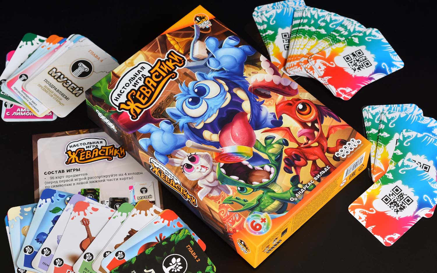«Жевастики» — семейная развивающая игра, сочетающая в себе яркие карточки и электронное приложение, которое поможет детям научиться смешивать разные цвета. Цель игры – накормить милых пушистых жевастиков, предварительно внимательно их рассмотрев. Какого цвета жевастик? Подберите угощения так, чтобы из их цветов можно было смешать именно это цвет. Просканируйте карты угощений и проверьте, удалось ли вам угодить вашему гостю.