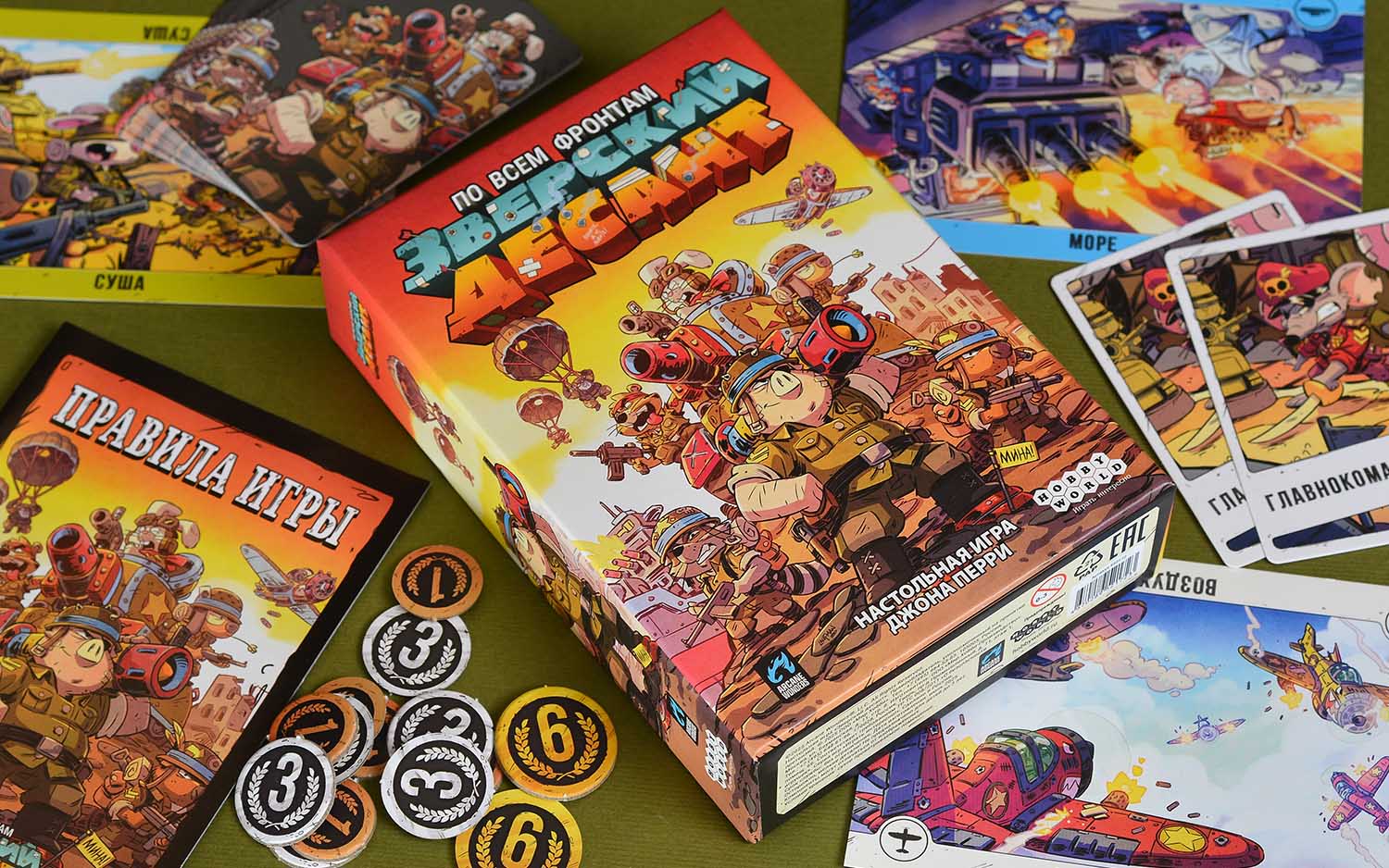 «Зверский десант» — дуэльная стратегия с минималистичными правилами и максимальной глубиной: всего 18 уникальных карт, но каждая открывает тактические возможности. Два игрока ведут армии зверей на трёх фронтах — суше, море и в воздухе, комбинируя эффекты карт для победы. Яркие иллюстрации и быстрые партии делают игру одновременно динамичной и стратегической, где каждое решение может решить исход битвы.