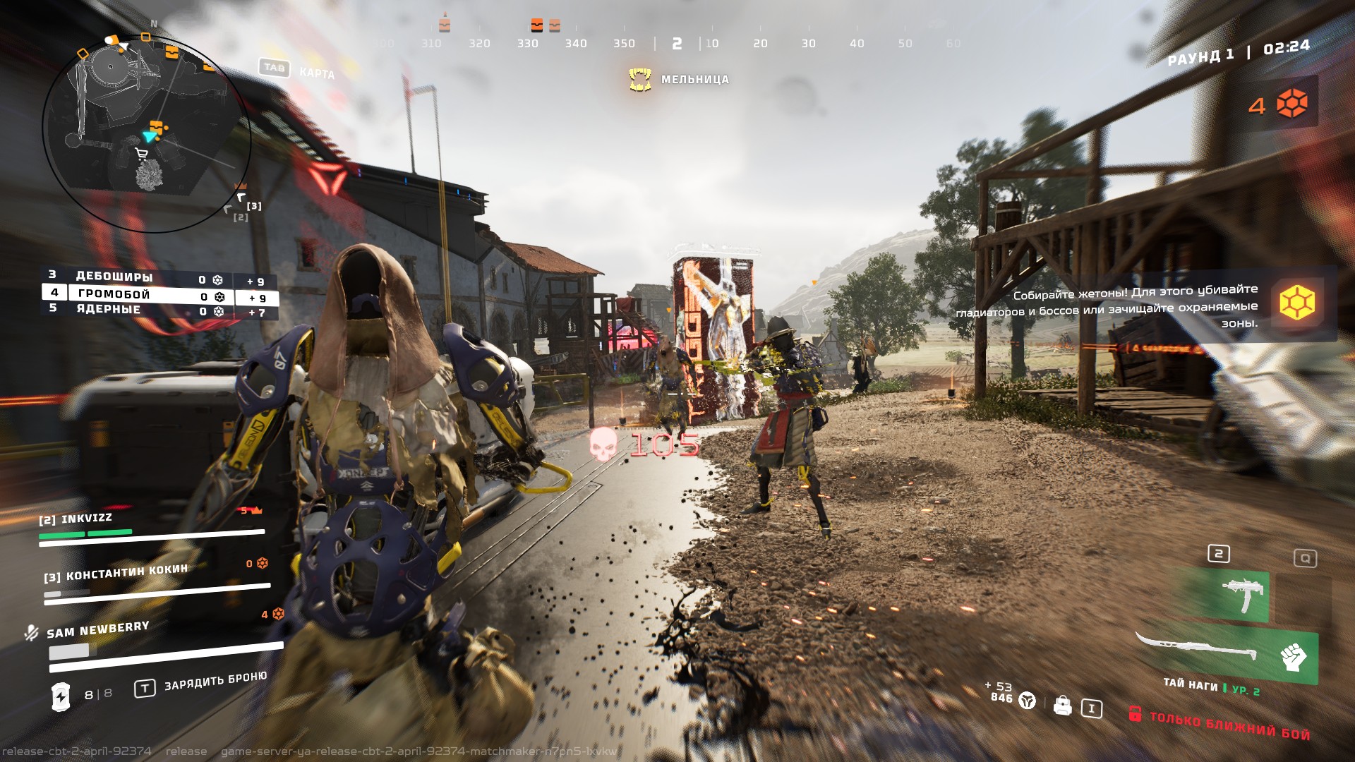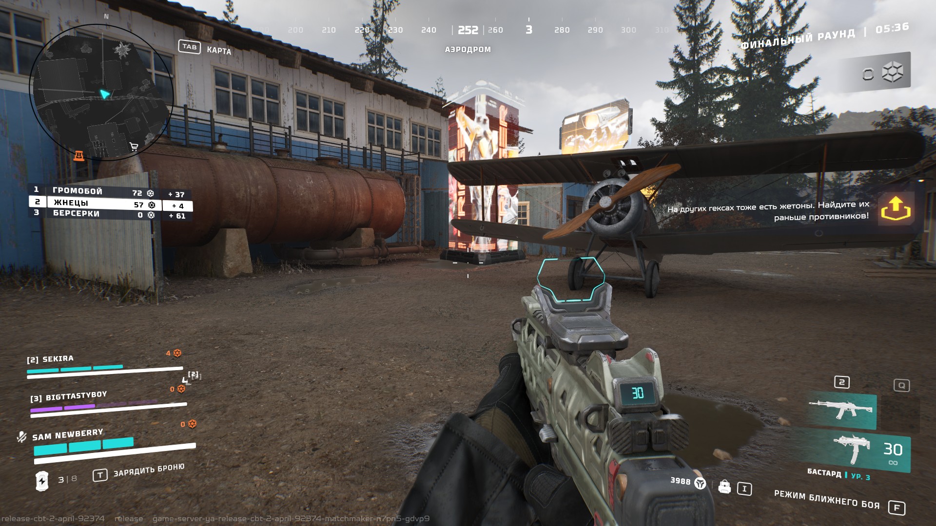 Единственный доступный в тестовой версии режим, если не считать тренировки и полигона – охота за жетонами. Команды из трех игроков собирают эти самые жетоны и сдают их в специальные приемники. Кто больше сдаст, тот и молодец (чем-то напоминает Call of Duty: Warzone). Остроты процессу добавляет то, что приемники расположены не на всех гексах, так что до них надо еще суметь добраться. Добываются жетоны из побежденных мобов и игроков, некоторое количество можно найти в контейнерах с лутом. В случае гибели вашего персонажа вы потеряете не все жетоны, а только половину, но тормозить с их доставкой все равно не стоит, ведь в зачет идет только то, что команда успела ссыпать в приемники на момент окончания матча.