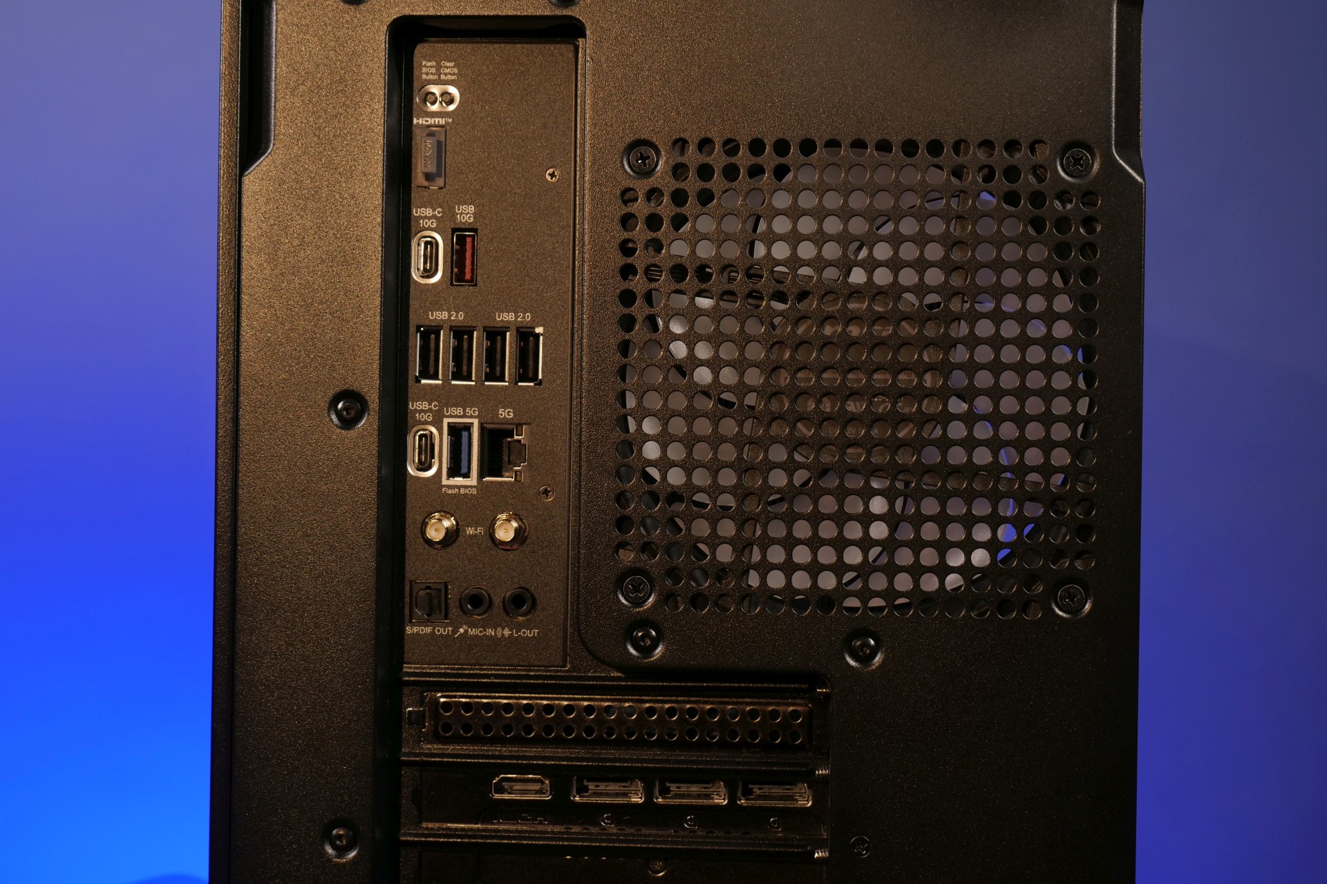 Большой 40-литровый корпус системного блока легко вмещает самые высокопроизводительные компоненты, и в нем все равно остается много места, что одновременно и способствует циркуляции воздуха, и позволяет без помех рассматривать начинку через закаленное стекло боковой стенки. Эффектность увиденному придает фирменная RGB-подсветка Mystic Light, которая благодаря технологии Ambient Link синхронизирована с тем, что происходит в данный момент в запущенной на компьютере игре.